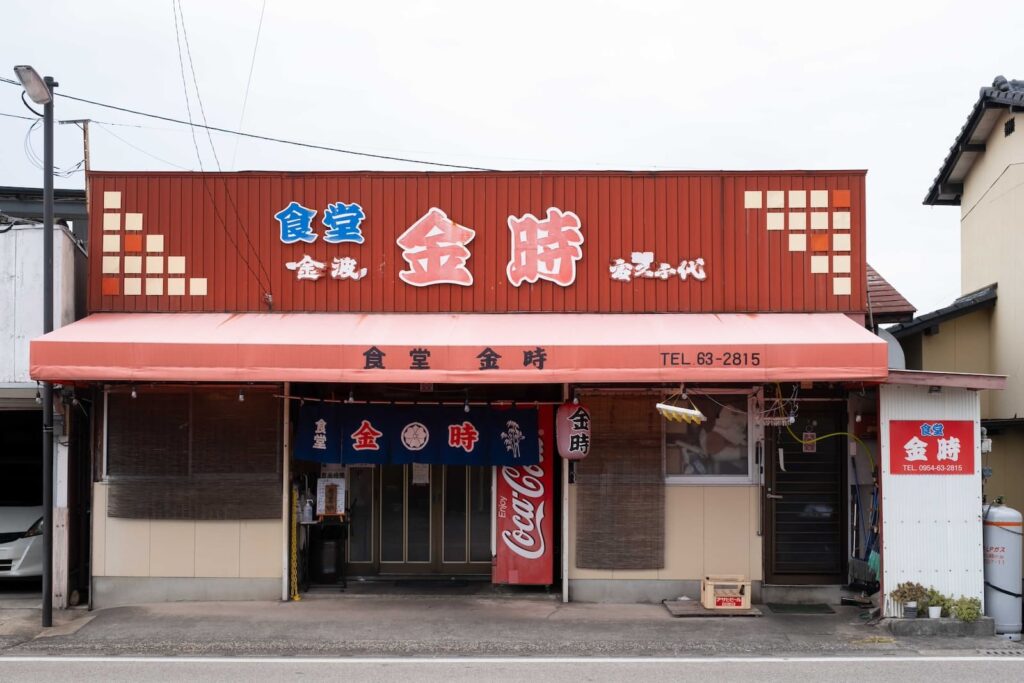 JR肥前浜駅から歩いてすぐ右側に見えてくるのが、1930年創業の食堂「金時」です。歩いているうちに、いつの間にかタイムスリップしていたのではと錯覚するほどの味わい深い佇まいで、どこかホッとする懐かしさを感じます。
