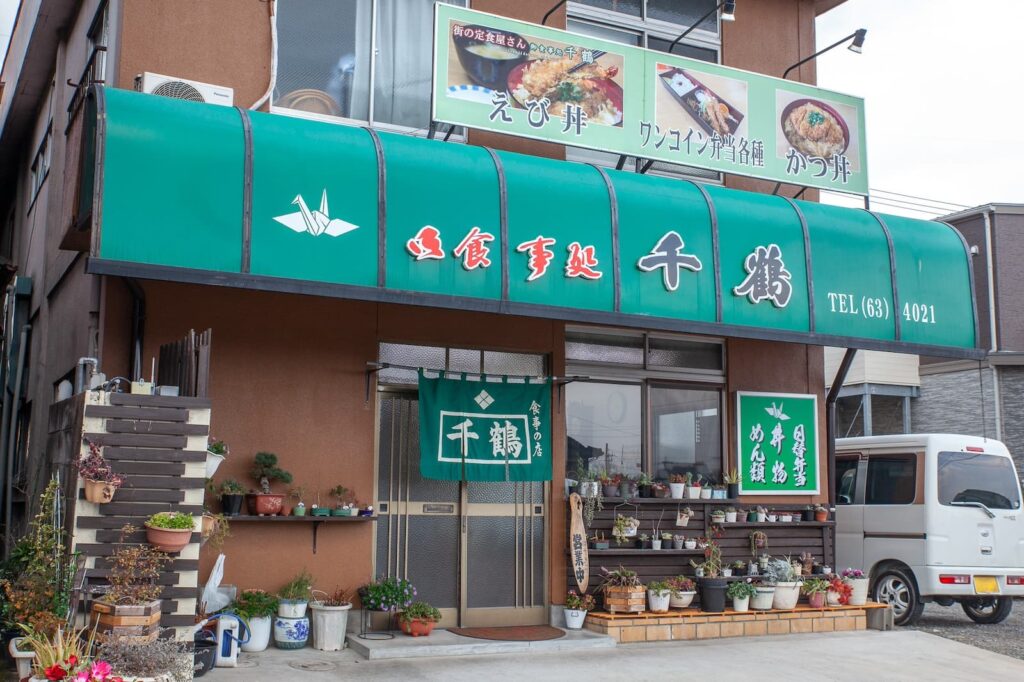 お昼時には、作業着姿の常連さん、営業途中のサラリーマンなど、さまざまな人が暖簾をくぐります。食べ終わると「ごちそうさま」と伝え、またそれぞれの日常へ。その背中を、折り鶴の看板が静かに見送っています。