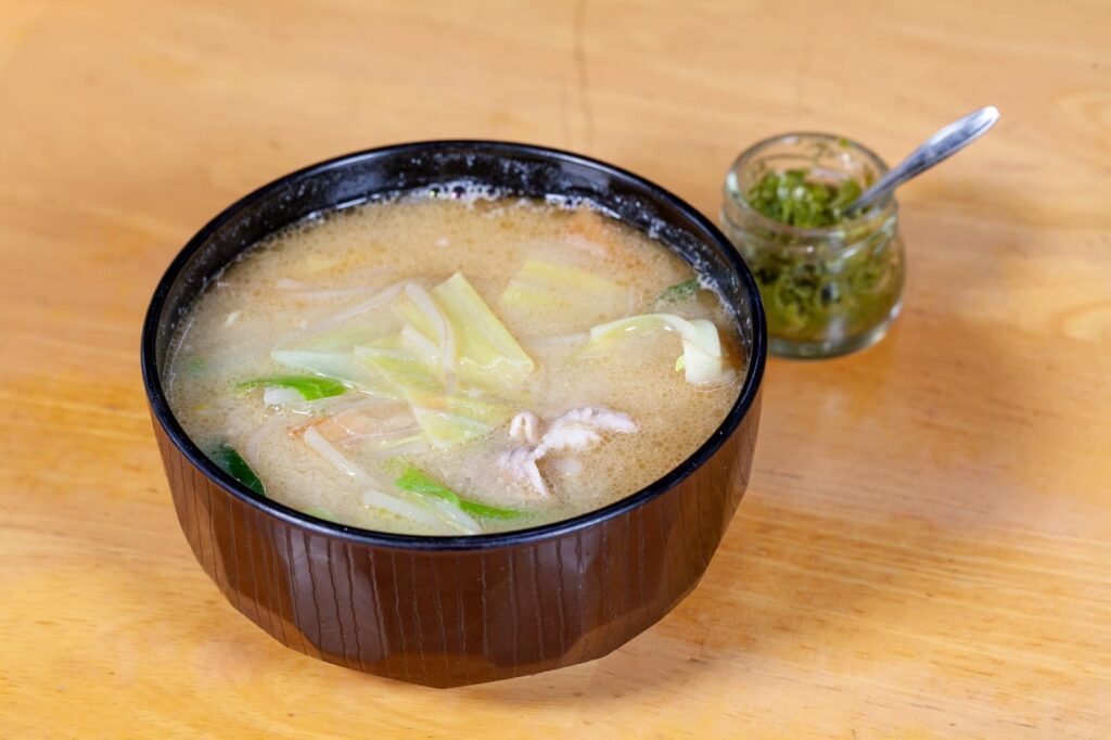 豚骨ベースの味は、今もなお健在です。ちゃんぽんはもちろん、実は千鶴の豚汁は豚骨ベース。これが、なかなか他では出会えない味です。家庭料理でも親しまれている豚汁ですが、豚骨ベースの味を食べたことがあるでしょうか。不思議なことに、豚骨の臭みはなく、豚の甘味があるマイルドな一品になっています。少し疲れた身体によく沁みわたることでしょう。